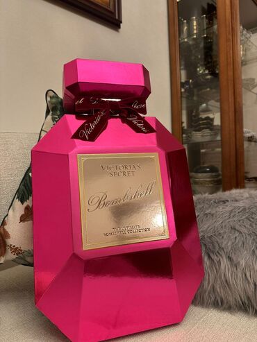 Möhtəşəm, parıltılı çəhrayı “ətir şüşəsi” formasında iri hədiyyə qutu. Üzərində zərif qızılı etiket və lent detalları var. Daxilində Bombshell xəttinə aid müxtəlif mini ölçülü ətirlər və bədən baxımı məhsulları yer alır. Setdə görünənlər: