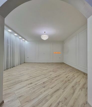 - Daxili: Geniş salon, ağ tonlarda klassik panellərlə işlənmiş divarlar, spot və şamdan tipli mərkəzi işıqlandırma, açıq rəng parket döşəmə, iri pəncərələr və qalın pərdələr.