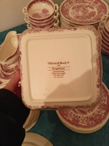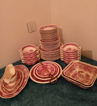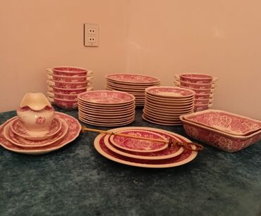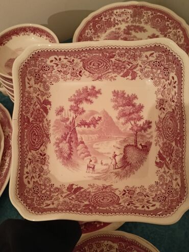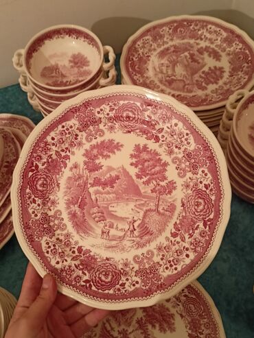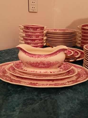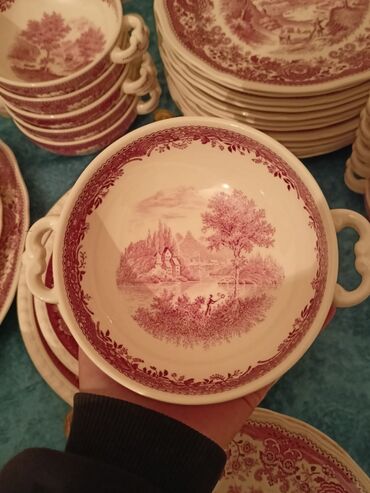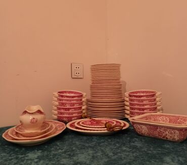 Çiçək naxışlı porselen servis dəsti - Material: yüksək keyfiyyətli porselen - Dizayn: ağ fon üzərində çəhrayı-yaşıl tonlarda incə çiçək budaqları; kənarlarda zərif qızılı haşiyə - Dəstdə olanlar: ...