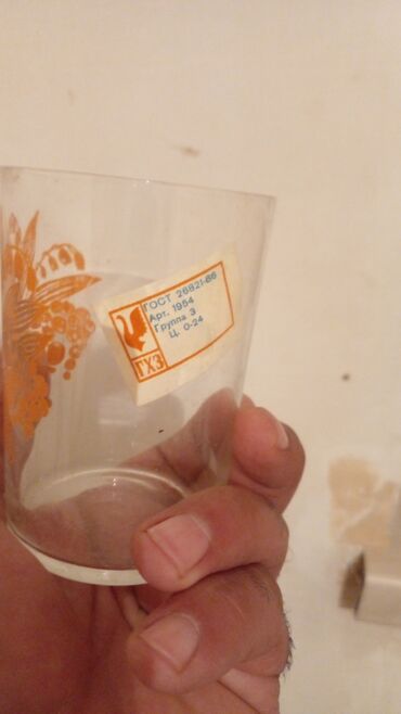 - Klassik sovet istehsalı şüşə stəkanlar. Etiketdə GOST 26821-86 qeyd olunub.
