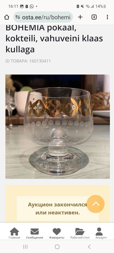 Qədəhlər, rəng - Qızılı, Şüşə, 6 ədədli dəst, Rusiya