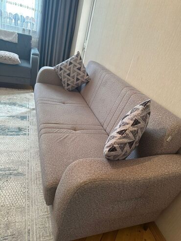 Damlanin teze divanı 2 gundu alinib 750azn alinib 550azn satirm tecili tezedir valla - Rəng: Açıq boz, tünd boz detallarla - Ümumi üslub: Müasir/klassik qarışığı, dekorativ tikişli bel yastıqları...