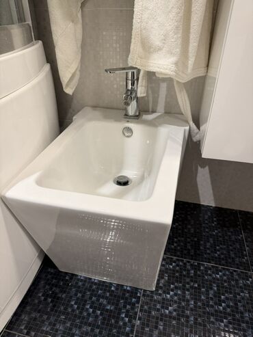 Quraşdırmaya hazır tam bide komplekti (keramika gövdə, kran, drenaj mexanizmi).