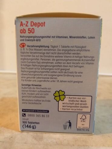 Vitamin-mineral kompleksi, “A-Z Depot “, 100 tablet, Almaniya istehsalı.
