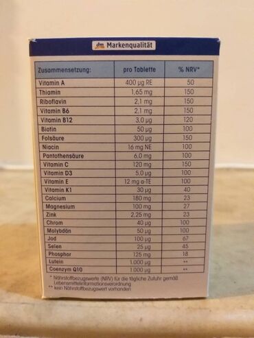 30 tablet miqdarında eyni element tərkibli bir preparat üçün siz aptekdə 27 ÷ 30 manat ödəyəcəksiniz. Biz isə 100 tablet həcmində həqiqi Alman keyfiyyətli vitamin-mineral kompleksini 3 qat ucuz təklif edirik.. Bu marketinq təşviqatı deyil. Vitamin kompleksini alaraq özünüz buna əmin olacaqsınız.