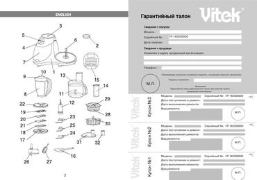 20%Vitek VT-1603 Mətbəx Kombaynı [700 Vt, qabın tutumu 1.5 L, universal şirəçəkən, blender]
