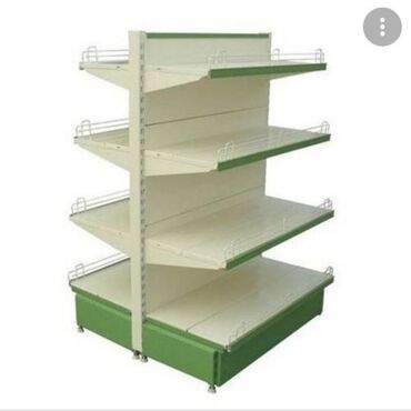 Mağaza vitrin rəfi – 4 mərtəbəli orta ada tipli stend, hərəkətli rəflər (3 əd mövcuddur). Hündurlük 90 sm/ En 60 sm/ Uzunluq 120 sm - Karkas: qara metal profil, möhkəm və sabit konstruksiya - Rəfl...