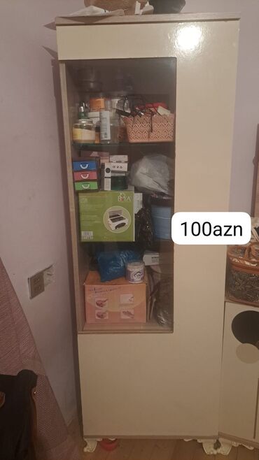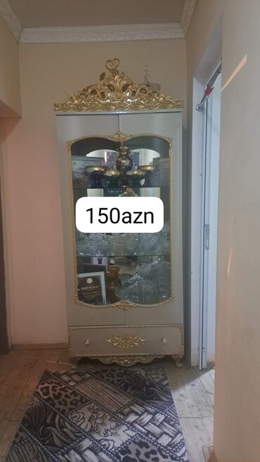 1) Şkaf – krem rəngli, ön hissəsi şüşəli vitrin