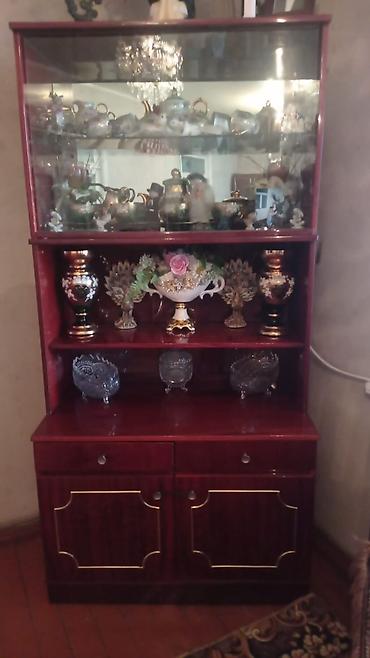 - Üst hissə: şüşəli vitrin bölməsi, 2 mərtəbəli rəflər – qab-qacağı, suvenir və kolleksiya əşyalarını nümayiş etdirmək üçün idealdır
