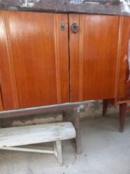 Klassik üslubda taxta serjant. - Material: ağac, tünd qəhvəyi rəngdə, frezəli çərçivə bəzəkləri - Üst hissə: şüşə qapılı vitrin (2 qapı), içəridə iki səviyyəli rəflər – qədəh, fincan, suvenir və d...