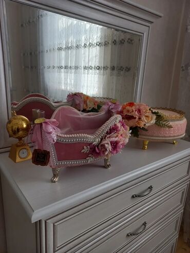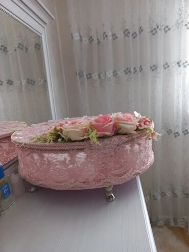 - Dairəvi qapaqlı xonça – üst hissədə süni güllər, kənarlarda ip və krujeva işləməsi.