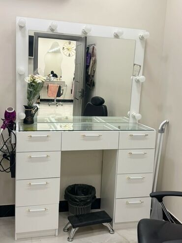 - İstifadə sahəsi: Gözəllik salonu, makiyaj otağı, stilist və manikür-makeup iş stansiyası üçün ideal; evdə şəxsi vizaj küncü kimi də uyğundur.