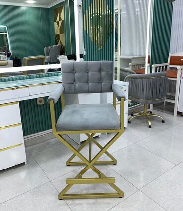 - Rəng: Boz məxmər oturacaq və bel hissəsi, qızılı metal karkas