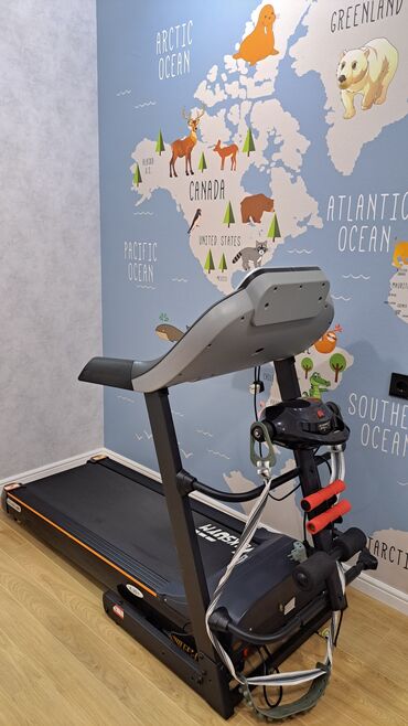 - Rəqəmsal konsol: sürət və proqram düymələri, LCD ekran göstəriciləri (vaxt, məsafə, sürət, kalori və s.). Start/Stop, proqram seçimi və sürət tənzimləmə düymələri