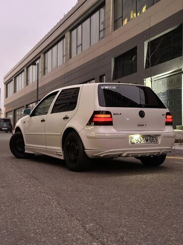 Volkswagen Golf 4, gümüş rəng, 5 qapılı hetçbek. Xüsusiyyətlər: - Aerodinamik body-kit: ön və arxa bamperlər, yan ətəklər, üst spoyler - Yüngül lehimli disklər, aşağı profilli təkərlər - Tonlaşdır...