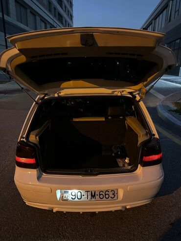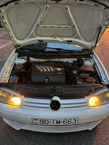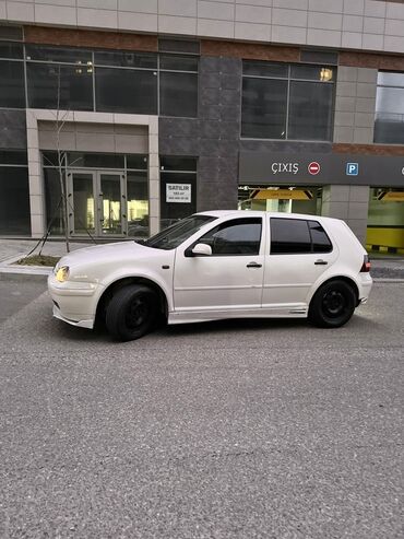 Volkswagen Golf 4 – 2.0 benzin, avtomat/ön ötürücülü hetçbek. Ağ rəng, 5 qapı, geniş salonlu və praktik şəhər avtomobili.