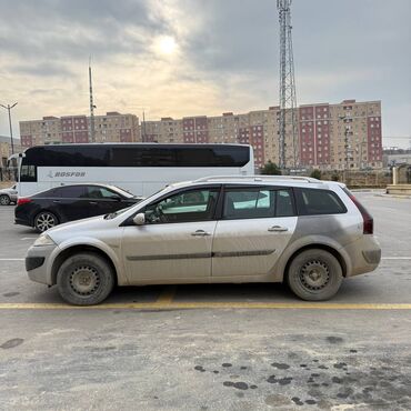Renault Scénic II (MPV) – gümüşü rəng, 5 qapılı, geniş və praktik salonlu ailə avtomobili. Xarici: - Gümüşü kuzov, qara qoruyucu bamper və moldinqlər - Dam relsləri - Halogen ön faralar - Tündləşd...