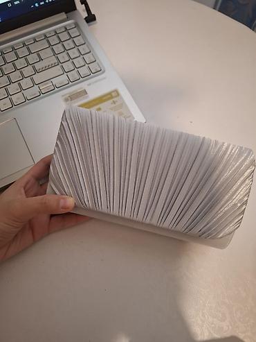 Gümüşü rəngdə, qabarıq plisə teksturalı zərif qadın klatç çantası.