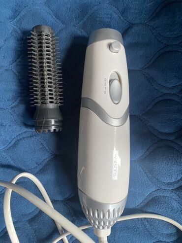 Saç quruducu və fırça tipli fen - Şəbəkəyə qoşulan elektrikli fen (2 pinli fiş) - Silindrik gövdə, ön tərəfdə sürət və istilik üçün sürüşdürmə düyməsi - Başlıq dəyişmə sistemi: dairəvi fırça başlı...