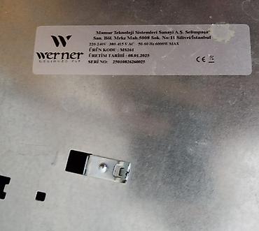 Mətbəx mebeline quraşdırıla bilən, dörd dairəvi ocaq zonasına sahib, toxunma ilə idarə olunan şüşə-keramika elektrik paneli. Werner loqolu ön hissə, alt hissədə model və elektrik spesifikasiyaları etiketi mövcuddur.
