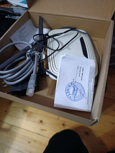 TP-Link simsiz Wi‑Fi router - Brend/model: TP‑LINK (ev/ofis üçün klassik N seriyası router) - Tezlik: 2.4 GHz - Portlar: WAN + bir neçə LAN portu (masaüstü kompüter, IPTV və s. üçün) - Antena: Sab...