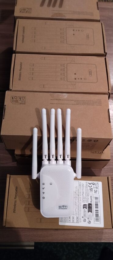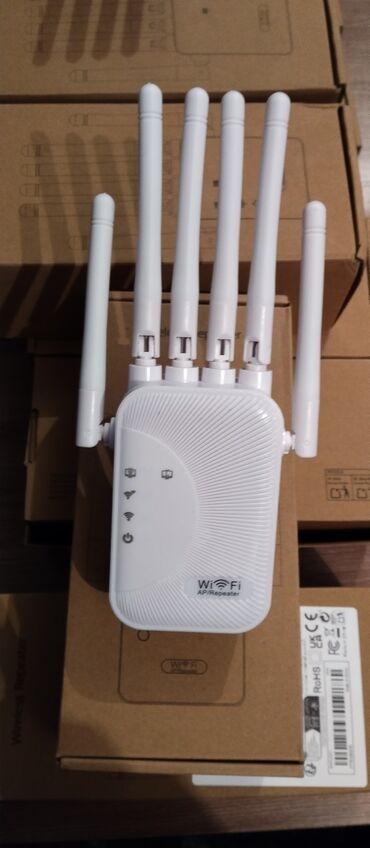 Wi‑Fi AP/Repeater – 4və 6 antennali siqnal gücləndirici Wi‑Fi Siqnal Gücləndirici/Repeater Əgər wifiniz güclüdür amma otağınızda 1 xətt tutur və ya qonşunuz wifisi sizdə tutur amma zəifdi bu alət s...