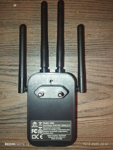 Wi‑Fi Repeater (1200 Mbps) – siqnal gücləndirici Xüsusiyyətlər: - 1200 Mbps sürət dəstəyi (üzərində qeyd: Wi‑Fi 1200Mbps) - 6 ədəd tənzimlənən antenna – geniş əhatə və stabil siqnal üçün - Divar p...