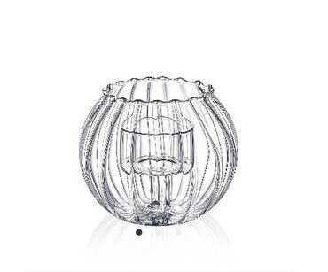 Zəriflik və işığın harmoniyası bir arada – bu şüşə şamlıq həm dekorativ, həm də funksional istifadəyə malikdir. İkiqat divarlı dizaynı sayəsində istiliyi izolyasiya edir və şamın alovunu daha təhlükəsiz şəkildə qoruyur. Dairəvi forması və optik dalğalı naxışı sayəsində işığı gözəl şəkildə əks etdirir.