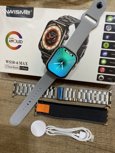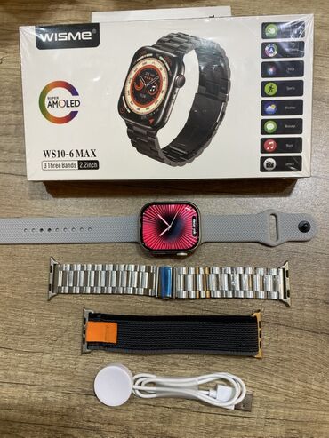 WISME WS10-6 MAX ağıllı saat dəsti - Ekran: 2.2 düym Super AMOLED, canlı və parlaq görüntü, toxunmaya həssas. - Korpus/idarəetmə: yan fiziki düymə, kvadrat ekranlı dizayn. - Funksiyalar (qutudakı ...