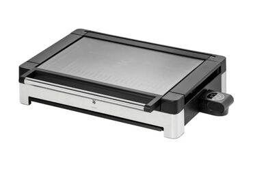 Delonghi MultiGrill elektrikli kontakt qril - Paslanmayan polad korpus, üst qapaqda Delonghi MultiGrill loqosu - İki tərəfli bişirmə səthi: yuxarıda qril izli lövhə, aşağıda hamar lövhə - Lövhələr...