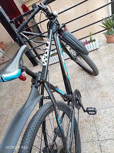 Şəhər gəzintisi, gündəlik yol və yüngül dağ marşrutları üçün praktik seçimdir. Model üzərində “WOLF”, “MOUNTAIN BIKE” yazıları mövcuddur. Fotoşəkillərdə görünən aksesuarlar daxildir. HONOR X6c ilə çəkilmişdir.