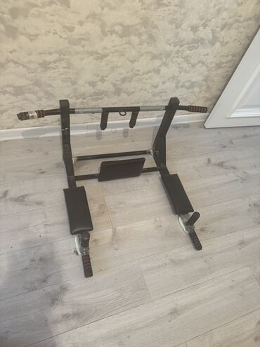 - Evdə idman üçün çoxfunksiyalı divar turniki–press–parallel qollar qurğusu. Yumşaq süngər tutacaqlar, qolaltılar və bel dayaq yastığı, müxtəlif tutuş mövqeləri.