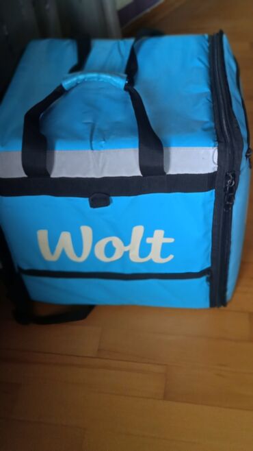 Wolt Partner çatdırılma çantası (termos/backpack) - Rəng: firuzəyi mavi, “Wolt Partner” loqolu - Tip: kvadrat formalı termo bel çantası və ya əlcəkmə üçün iki ədəd üst tutacağı olan daşıma çantası...