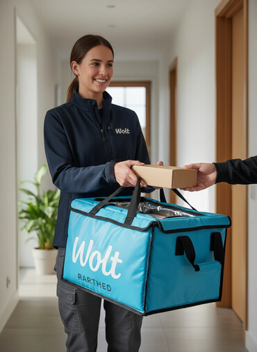 - Rəng: açıq mavi, yanlarda Wolt loqosu