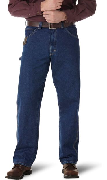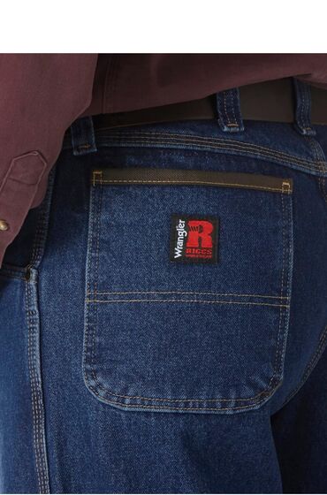 EndirimsizOriginal Amerikan Wrangler Riggs Workwear kişi cins şalvarı – tünd mavi (dark indigo) rəngdə, iş və gündəlik istifadə üçün rahat kəsim.