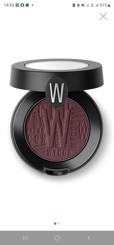 Fokus məhsul WYCON təkli mat göz kölgəsidir; dərin bənövşəyi ton elegant və ifadəli baxış yaradır.