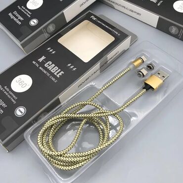 AppleX-CABLE metal magnetic cable. Maqnit USB-dir. 3 başlıdır yəni həm Mikro, həm Type-C, həm də İphone başlığı var. İstədiyiniz başlığı qoyub ona uyğun telefonu zaryatka yığdıra bilərsiniz. Fast Şarjdır. Başlıqlar 360° fırlanmaya malikdir