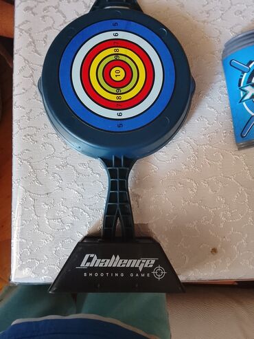 - “Challenge Shooting Game” masaüstü dairəvi hədəf (xal bölgələri 5–10 arası işarələnib)