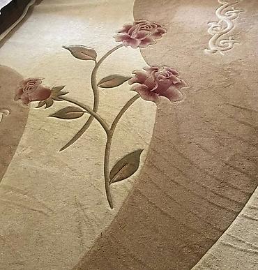 - 2-ci xalça: bej–krem tonlarında yumşaq keçidlər, relyefli üç ədəd qızılı-çəhrayı qızılgül motivi, dalğavari fon elementləri