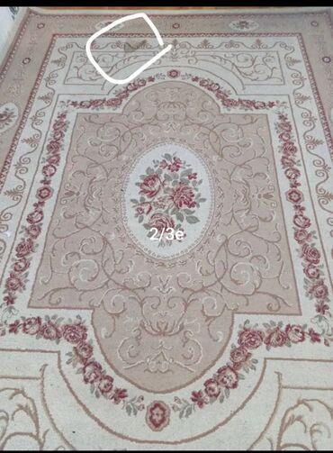 Tam yeni istifade olunmayıb sadece gösterilmek üçün açlıb. Xalça – klassik naxışlı, krem-bej tonlarında, toz çəhrayı və şərab rəngi akssentlərlə. - Forma: düzbucaqlı - Ölçü təxmini: 2,0 x 3,0 m (g...