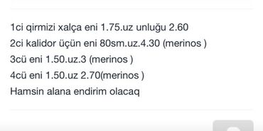 - 4-cü xalça (merinos): eni 1.50 m, uzunluğu 2.70 m