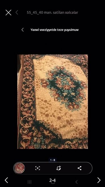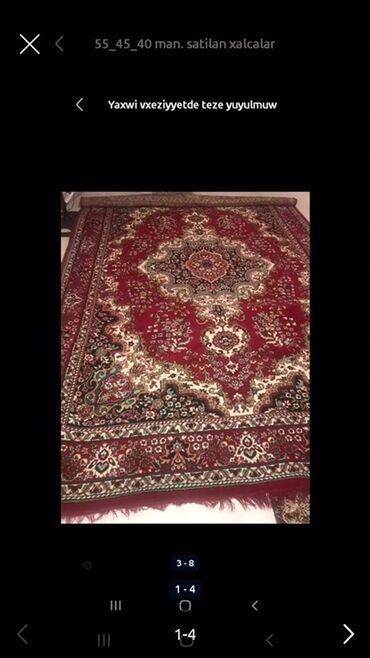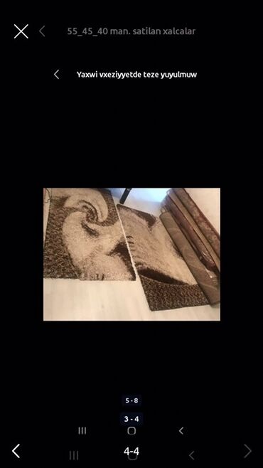 Qeyd: Şəkildə başlıqda “45-35man. satılan xalçalar” və “yaxşı vəziyyətdə təzə yuyulmuş” yazıları yer alır. Telefon nömrəsi göstərilmir.