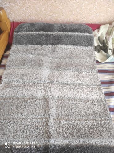 - 2 ədəd düzbucaqlı/yumşaq künclü xalça. Üzü tüklü, biri eninə zolaqlı boz tonlarda, digəri relyefli dairəvi naxışlı açıq boz.