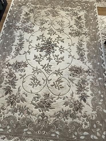 Xalça – klassik naxışlı, açıq bej və mavi tonlarda - Ölçü: təxmini 80×150 sm (koridor, giriş və ya kiçik otaqlar üçün uyğun) - Dizayn: mərkəzdə medalyon motivi, klassik şərq naxışları, açıq fon üz...