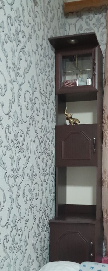 - Quruluş: künc tipli, yuxarıda şüşəli vitrin bölməsi, açıq raf, iki qapalı dolab bölməsi, alt hissədə əlavə platforma