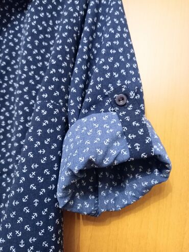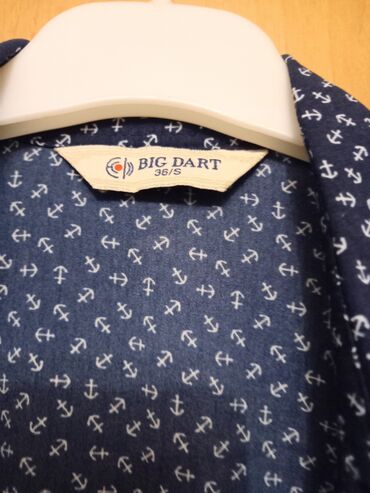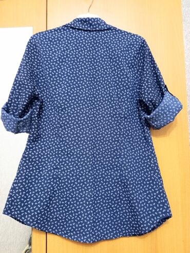 Xanım üçün göy rəngli üzəri naxışlı dartılan yumşaq materialdan köynək. Big Dart firması. S razmer. 36/38 razmerlərə rahat olur. Qolları yuxarıya qatlanır düyməlidir. Az geyilib, yeni kimidir.