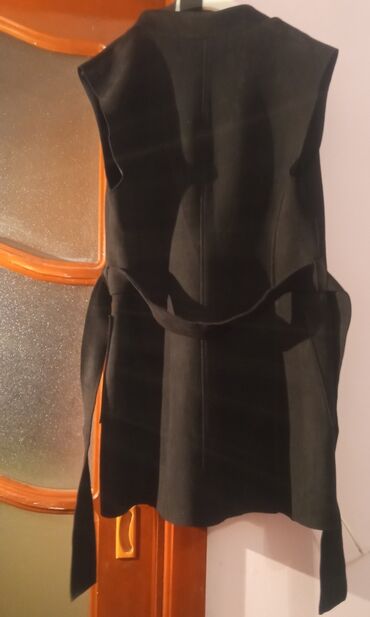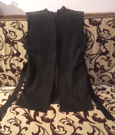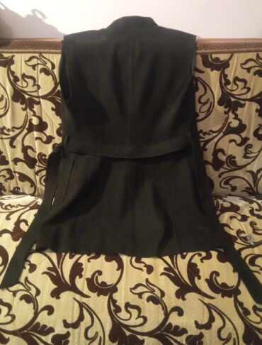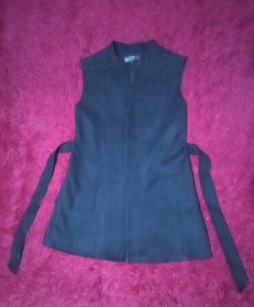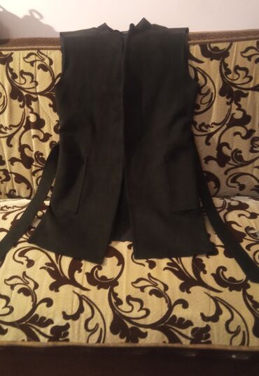 Pulsuz çatdırılmaÜnvandan götürməXanım üçün qəhvəyi rəngli yumşaq zamuj materialdan jilet və qara rəngli, zamuj materialdan, belində öz parçasından kəməri olan iki cibli, dizdən bir az yuxarı olan jilet. 36/38 razmerlərə rahat olur. Az geyiliblər. İkisi birlikdə 8 manat.
