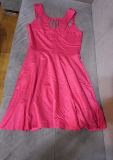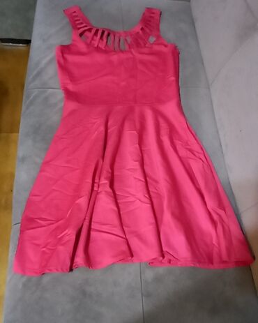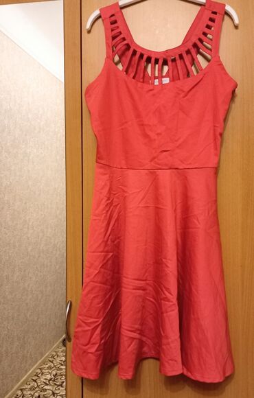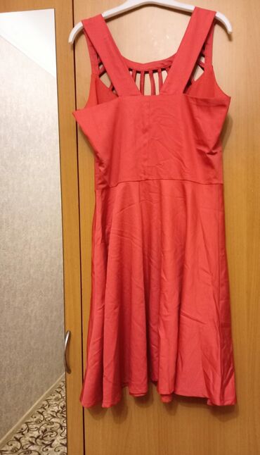 Xanım üçün qırmızı rəngli, sərin materialdan içi astarlı, ətəyi klyoş mini yay donu,uzunluğu 92 sm. Sophistic firması. S razmer. 36/38 razmerlərə rahat olur. Yandan zamokludur. Donun sinəsi naxışlı formada xətli kəsimdir. Az geyilib, yeni kimidir.