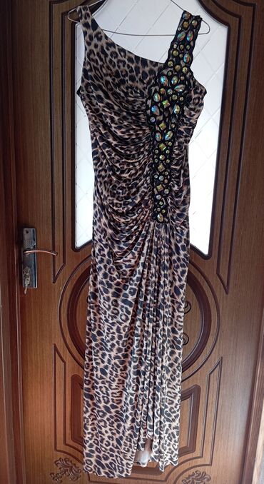 Pulsuz çatdırılmaÜnvandan götürməXanım üçün tiqrovu naxışlı yumşaq, dartılan materialdan uzun ziyafət paltarı. 36/38/40/42 razmerlərə rahat olur. Az geyilib.