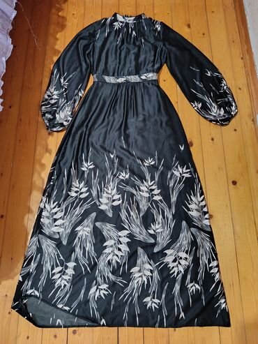 - Ağ bitki motivli print, uzun ətək